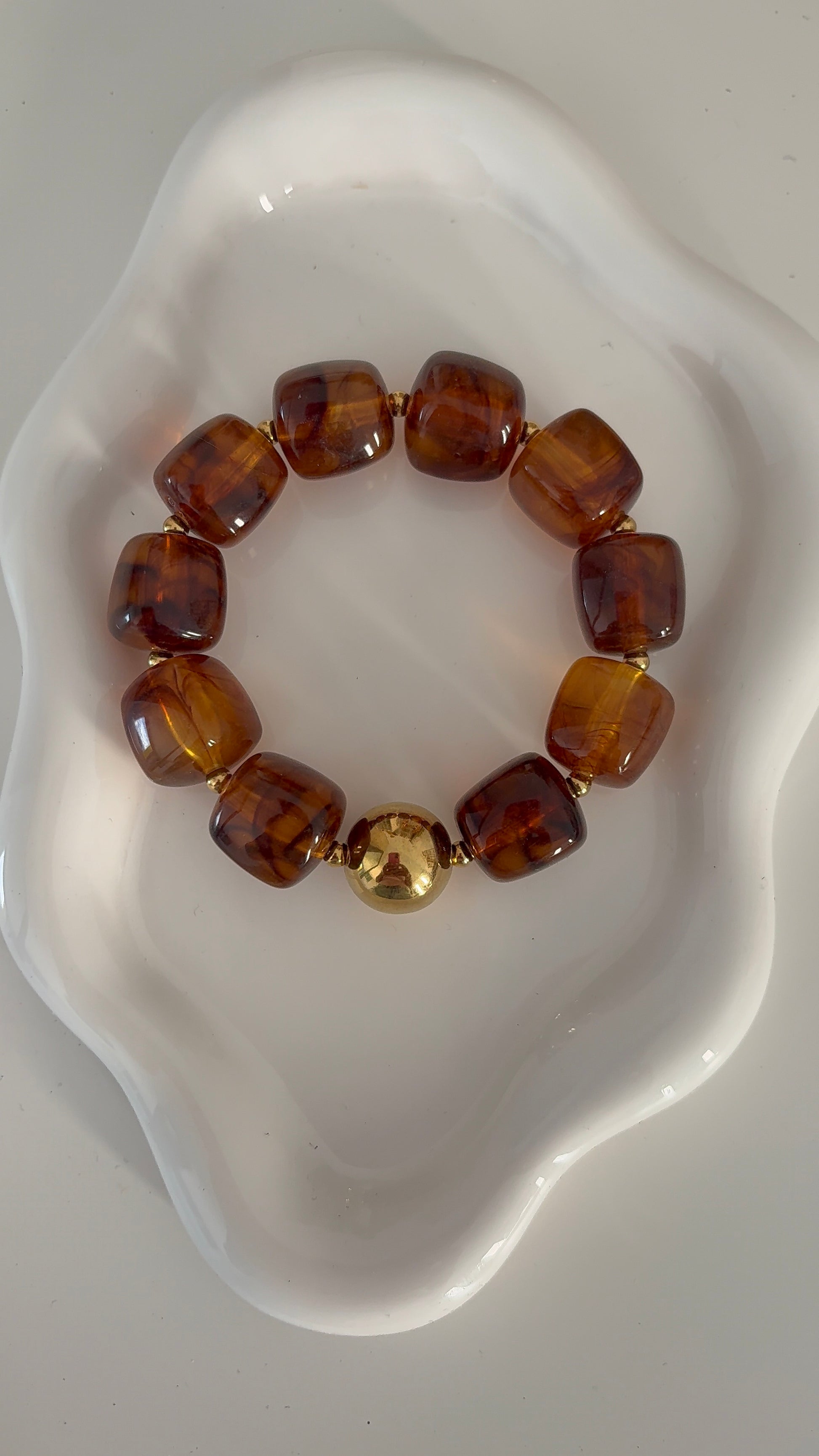 Pulsera elástica de beads brown y detalles en stainles steel